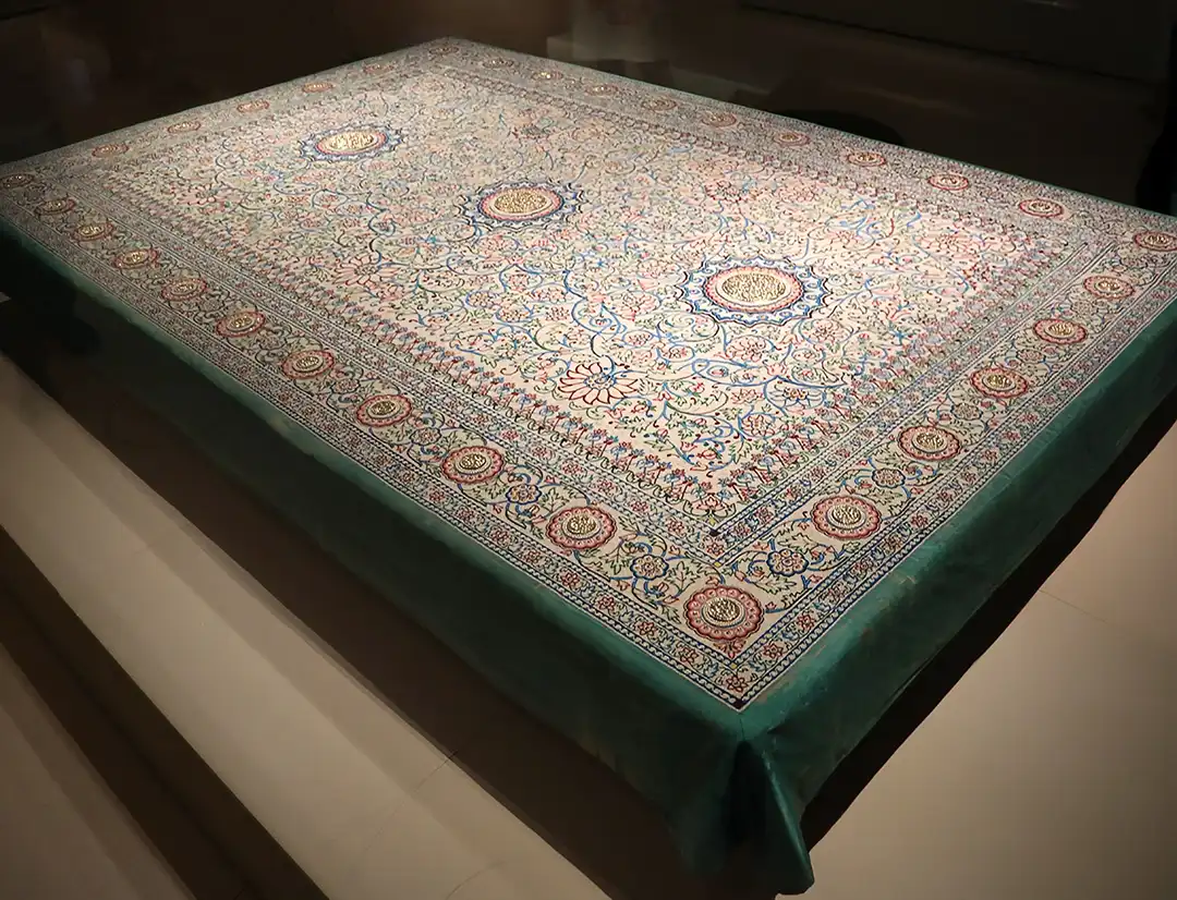 This extraordinary 19th-century masterpiece was commissioned by the Maharaja of Baroda in India. Unlike traditional wool or silk carpets, this piece is encrusted with more than a million natural Basra pearls, along with diamonds, emeralds, and rubies. Rather than being designed for daily use, it was intended as a ceremonial offering.