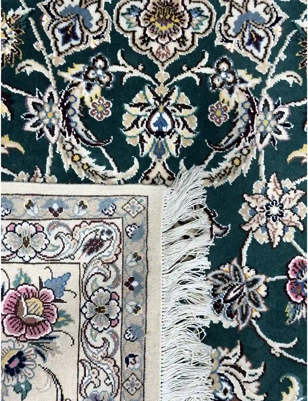 Beyond its technical excellence, this rug carries strong artistic and cultural significance. Nain weaving represents one of the most refined schools of Persian rug making, emphasizing balance, symmetry, and restraint. The rare green background introduces a subtle variation within this classical framework, demonstrating how tradition and innovation can coexist harmoniously. This careful balance makes the rug both timeless and distinctive, appealing to those who appreciate classic Persian design while seeking something slightly unconventional.